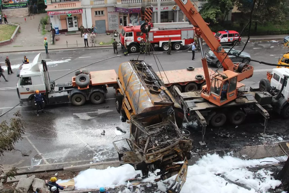 Бензовоз взорвался 27 июня на пересечении проспекта Сейфуллина и улицы Кабанбай батыра. В результате огонь перекинулся на жилой дом, пострадали 39 квартир и 12 припаркованных авто. Погиб водитель бензовоза - 27-летний Александр Горюнов.