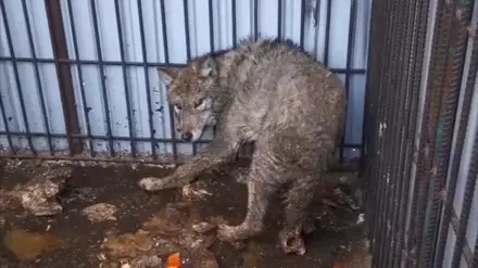 Публикацию с жуткими кадрами разместила в Instagram Евгения Калиниченко. На кадрах видно, как испуганный волк забился в угол грязного вольера, где даже не убраны фекалии. Видно, что животное сильно исхудало.
