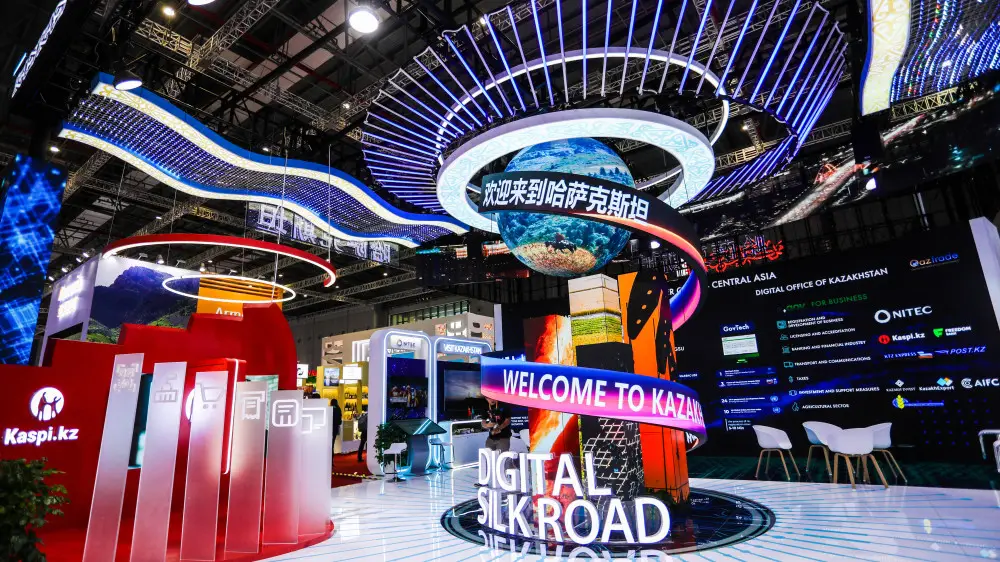 У выставочного стенда компании Kaspi.kz, хорошо знакомой каждому казахстанцу, – аншлаг. Здесь рассказывают о разделе "Госуслуги" в суперприложении Kaspi.kz и интеграции с AliPay+. Именно эти сервисы были выбраны для демонстрации высокого уровня цифровизации в стране.