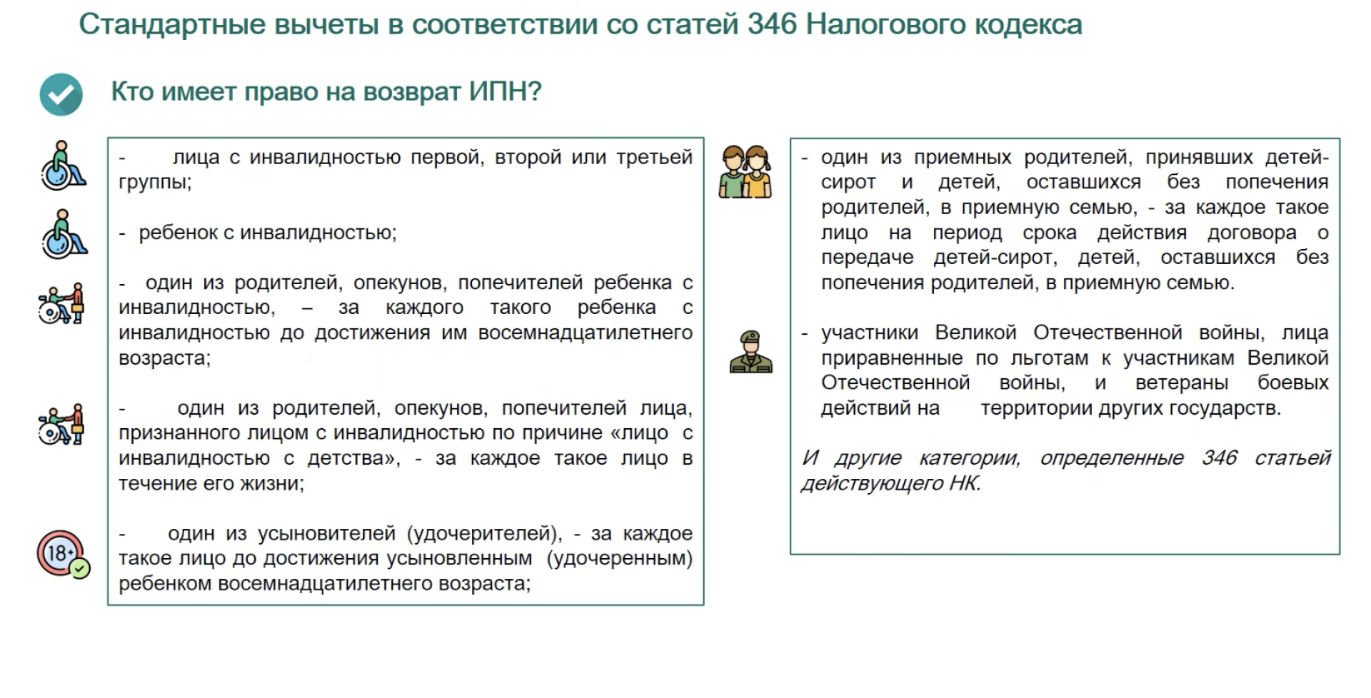 - другие категории граждан, определённые статьей 346 Налогового кодекса.