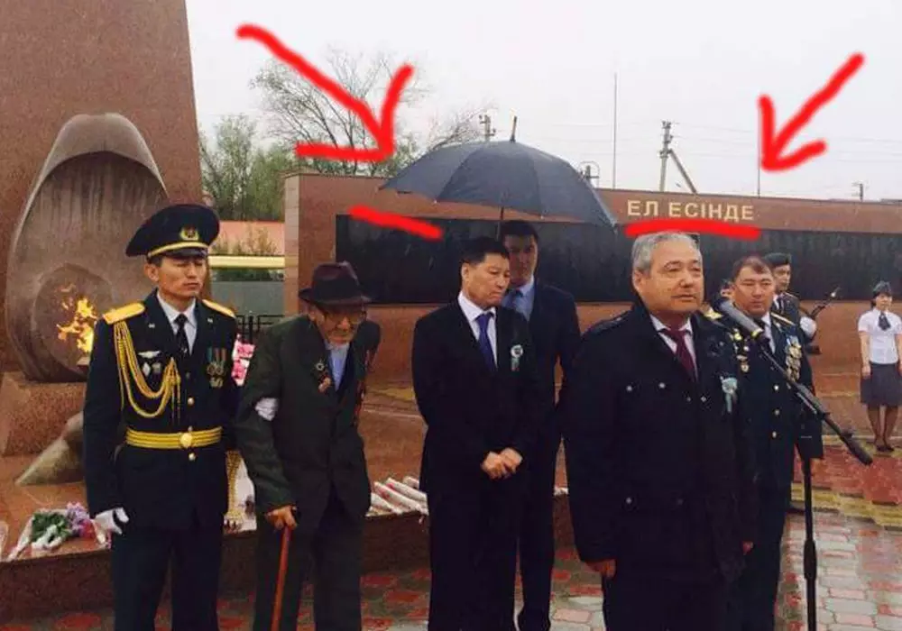 Как сообщалось ранее, в Интернете разгорелся скандал из-за фото. Главным героем снимка оказался замакима Атырауской области Салимжан Накпаев, которого помощник закрывает зонтом. Пользователи соцсетей возмутились таким отношением чиновников к участникам войны и написали гневные комментарии под фотографией, которую, к слову, за 2 часа просмотрели более пяти тысяч человек. В пресс-службе акимата назвали инцидент простым недоразумением.