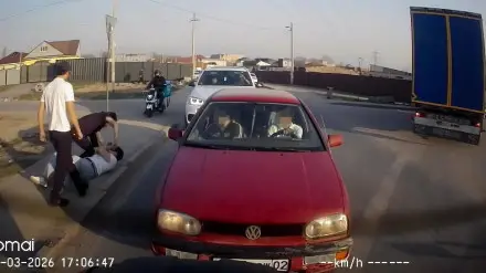 Очевидец происшествия прислал в редакцию видео с регистратора и рассказал подробности случившегося. По его словам, инцидент произошёл вечером 26 марта на улице Балпык би в Алатауском районе.