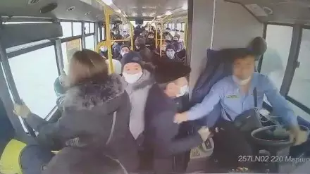 "После чего пассажир позвонил своему сыну, который приехал с другом, и вместе они нанесли несколько ударов водителю автобуса. Подозреваемые задержаны. Ими оказались жители села Нура Талгарского района, 28-летний сын пассажира и его 21-летний друг", - говорится в сообщении полиции.