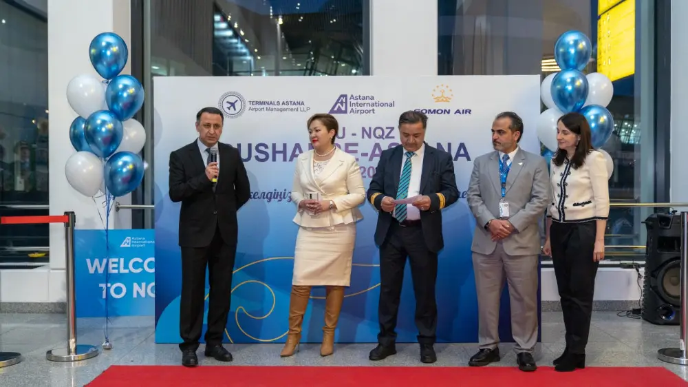 Сегодня в международном аэропорту Астаны состоялась торжественная церемония прибытия и отправления первого пассажирского авиарейса Астана - Душанбе.