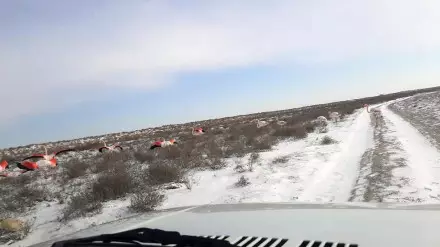 По словам автора фото, сегодня, 24 февраля, он отправился за своим скотом в район железнодорожного разъезда Сарша в Бейнеуском районе. По дороге путь ему преградила замерзающая стая птиц.