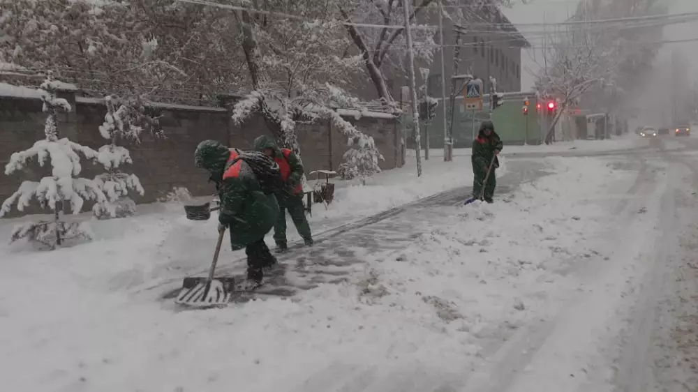 Уточняется, что в верхней части города выпало до 15 сантиметров снега, в горных районах - до 25 сантиметров. По всему Алматы сейчас работают 597 единиц техники и 1668 дорожных рабочих.