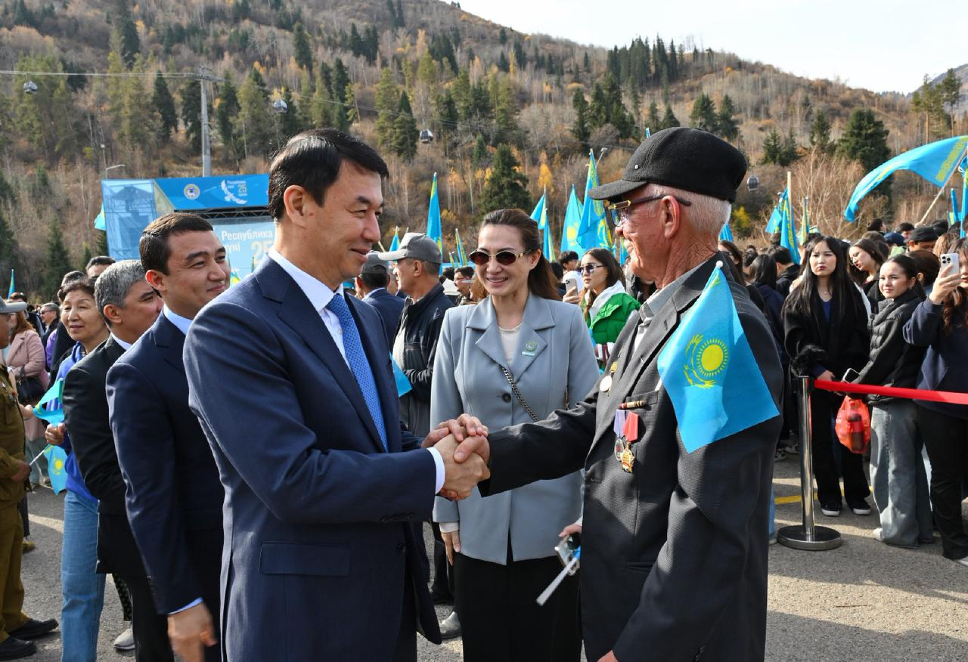 "Подобные мероприятия состоялись по всей стране, что демонстрирует приверженность казахстанцев основным ценностям нашего общества - единству, патриотизму, ответственности за настоящее и будущее государства. В крупнейшем мегаполисе Казахстана торжественные собрания, как и положено, приняли большой масштаб. В преддверии Дня Республики в Алматы был проведён целый ряд мероприятий, направленных на укрепление наших ценностей, которые и символизируют национальный праздник. Церемония поднятия флага стала кульминацией этой работы", - сказал Айдар Есенбеков.