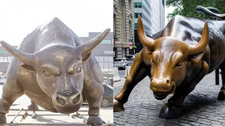 Атырауский бык напоминает знаменитую скульптуру Charging Bull (Бросающий вызов бык), установленную в Нью-Йорке на Уолл-стрит. Американская скульптура ассоциируется с ростом рынка.