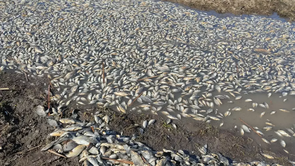 Рыбу до сих пор вылавливают и собирают специалисты инспекции. Поэтому общий вес еще увеличится на сотни килограммов. Мертвую рыбу выбрасывает к берегу, расположенному недалеко от села. По словам местных жителей, летом водоем используют как водопой для скота.
