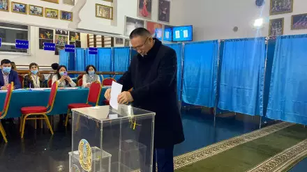 Избирательный участок, где голосовал Ауесбаев, находится в жилом массиве Коктал. По словам кандидата, он проживает в этом районе в частном доме.