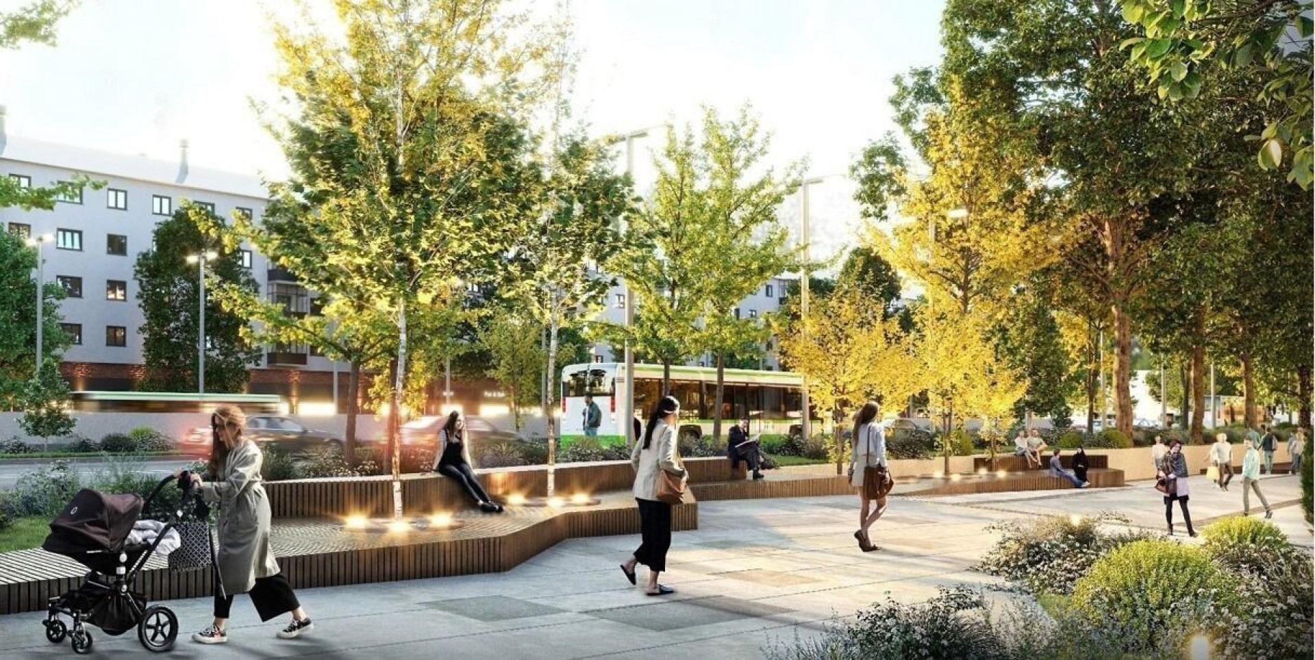 Каждую остановку планировали оснастить 50-метровым навесом, под которым одновременно могут разместиться до шести автобусов, интерактивными табло с расписанием и благоустроенной прилегающей территорией.