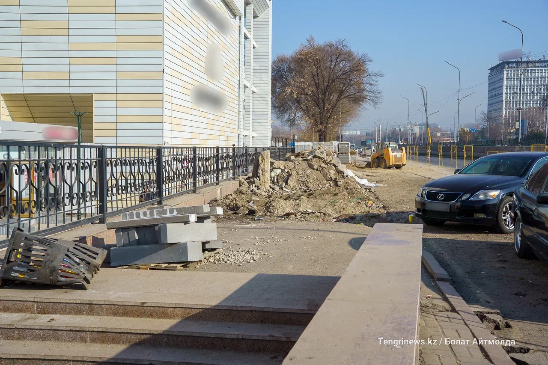 Чуть дальше, в сторону проспекта Суюнбая, тротуар пока не достроен: повсюду строительный мусор и техника. С большой долей вероятности этот участок входит в проект BRT, поскольку обновление проспекта предусматривает реконструкцию тротуаров и зелёных зон.