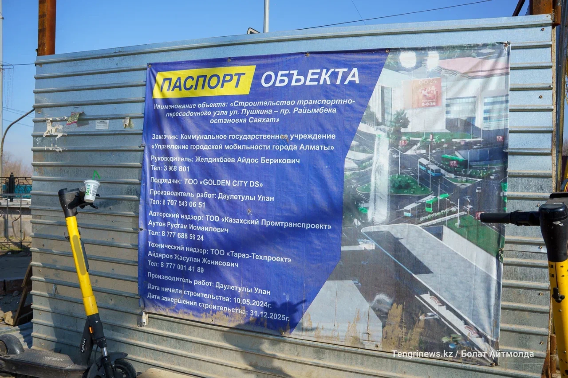 Согласно паспорту объекта, подрядчиком выступает ТОО "Golden City DS", а срок сдачи установлен на 31 декабря 2025 года.