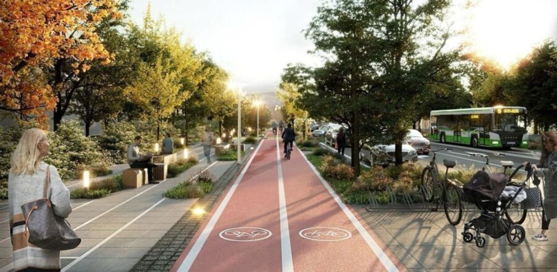 Согласно эскизам акимата, в завершённом виде велопешеходная зона должна выглядеть примерно так: