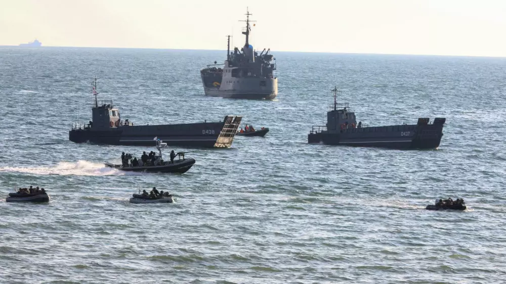 В Баку министр обороны генерал-полковник Руслан Жаксылыков принял участие в наблюдении за розыгрышем практических действий комбинированного казахстанско-азербайджайнского военно-морского учения "Хазри-2023".