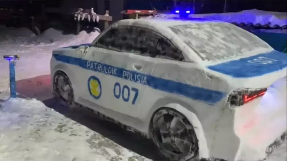 Надир Куанаев опубликовал фото и видео копии патрульного авто из снега на личной Instagram-странице.