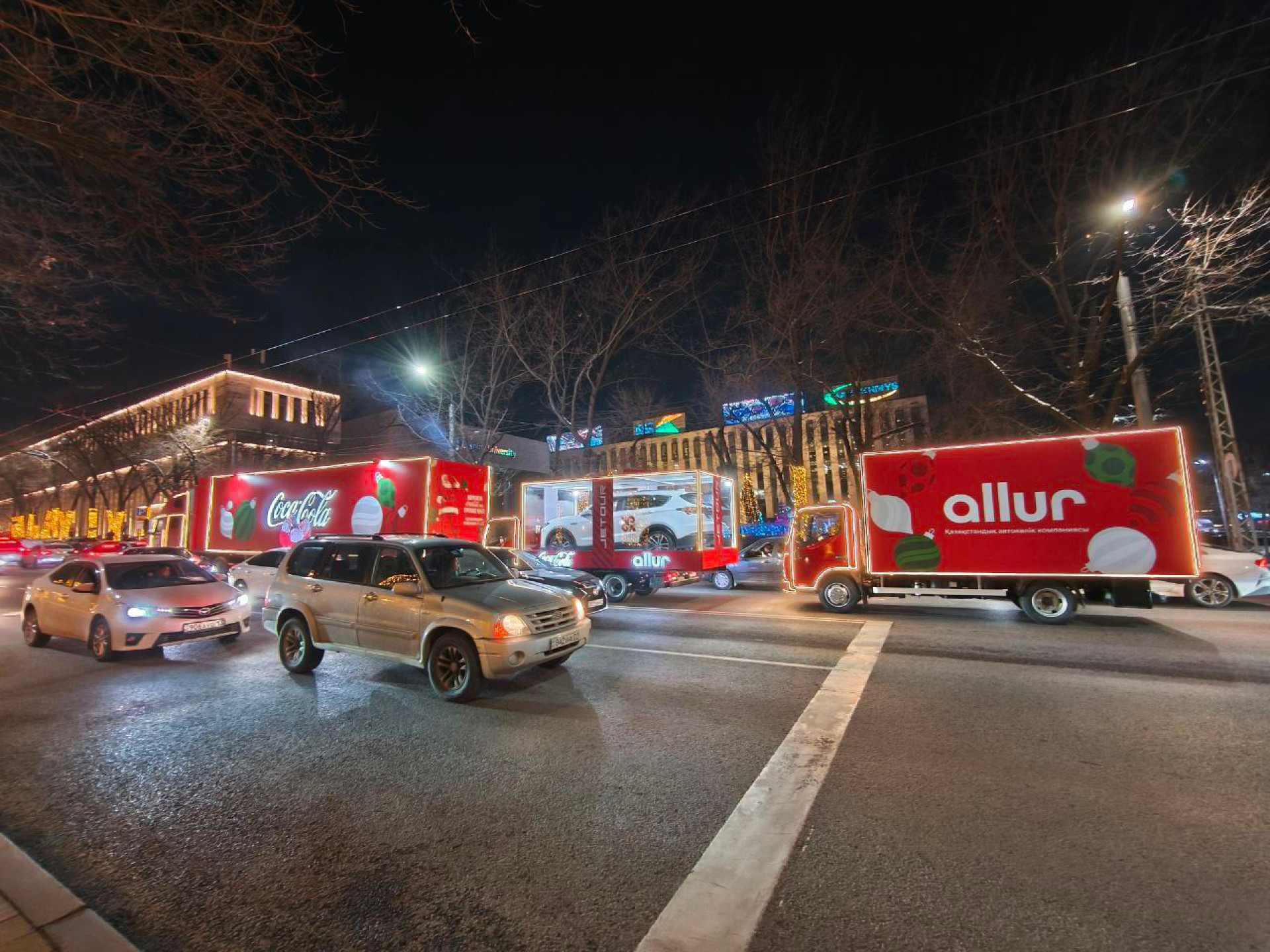 Впервые в истории новогоднего Каравана Coca-Cola в его колонну вошли автомобили казахстанского производства. Проект реализован при участии национального автомобильного холдинга Allur.