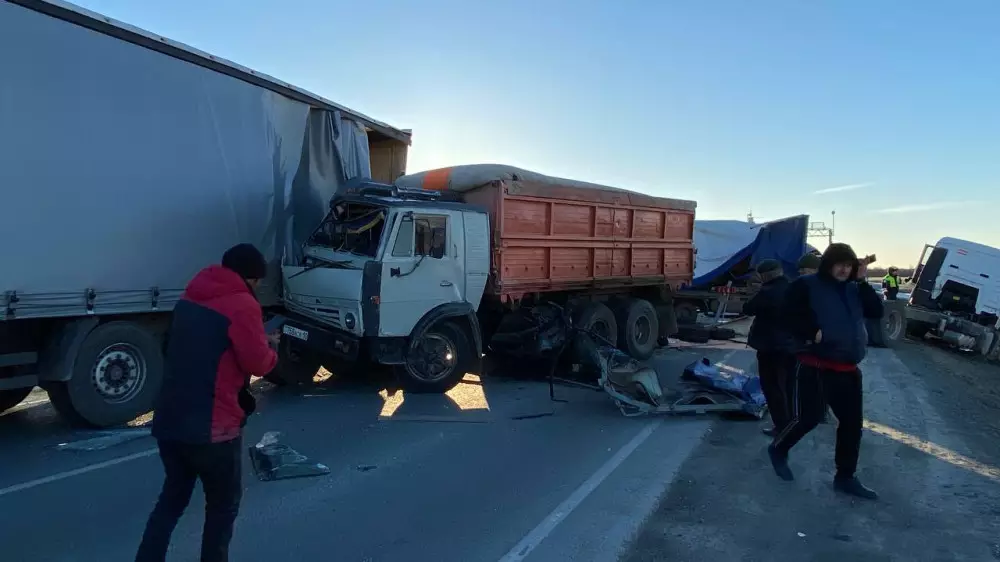 Казахстанские грузовики попали в массовое ДТП в России, передает корреспондент Tengrinews.kz.