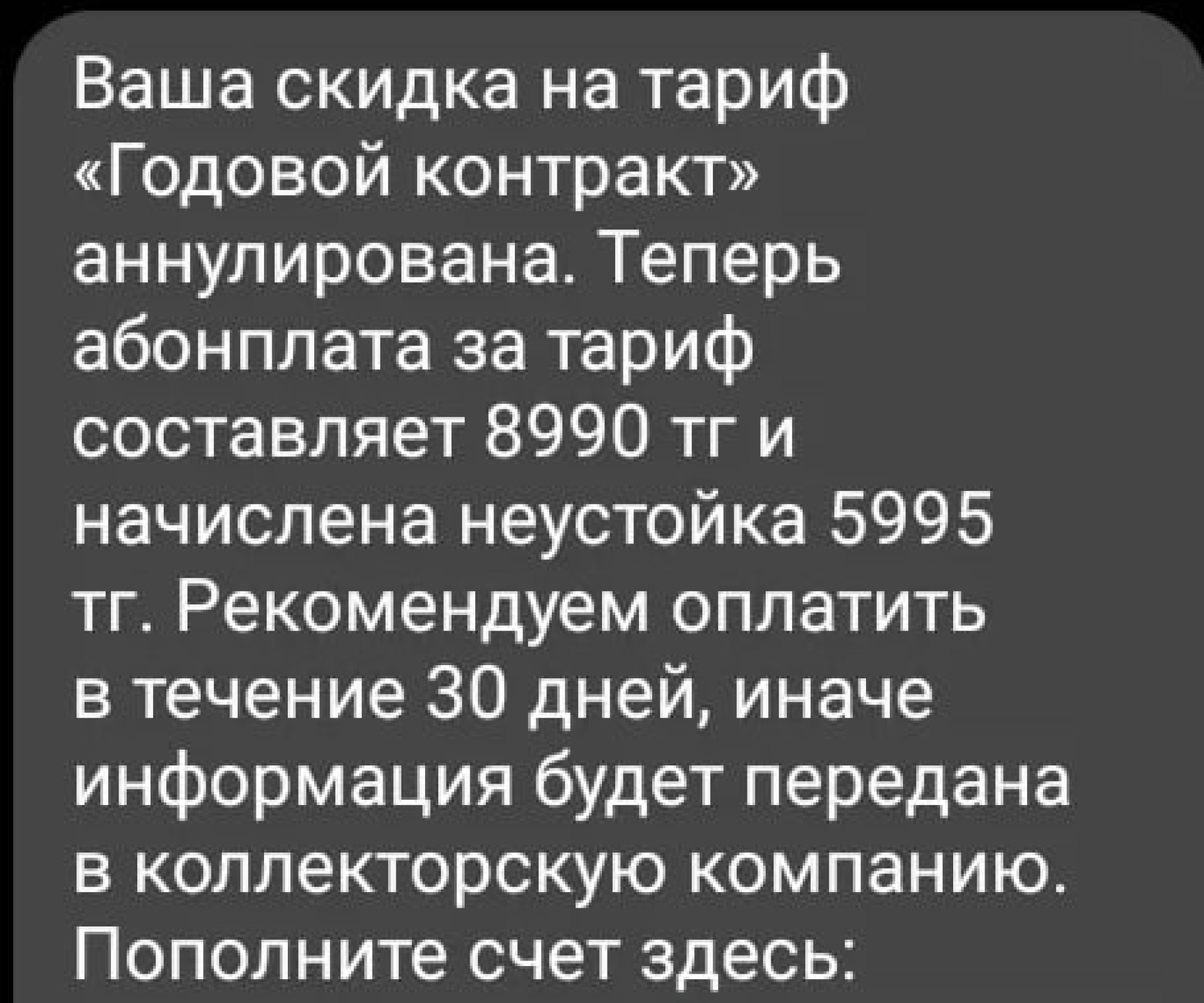 По словам автора жалобы, он подключил тариф по акции примерно за 5 тысяч тенге. Вне акции, как он отмечает, его стоимость составляла 8 990 тенге. Однако затем он несколько месяцев не пользовался SIM-картой. Когда решил проверить баланс, обнаружил, что ушел в минус.