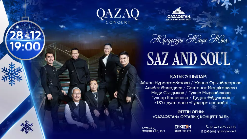 28 декабря в 19:00 вокально-инструментальный ансамбль SAZ&SOUL представит зрителям праздничную программу, где прозвучат известные новогодние песни.