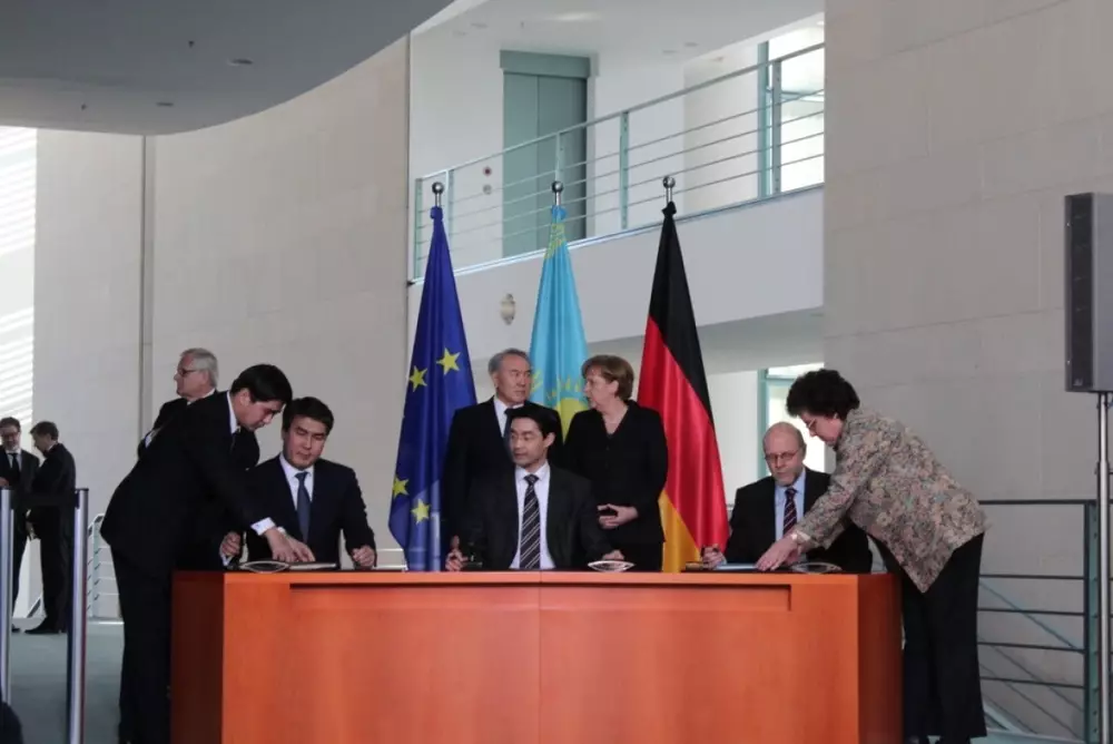 "Мы подписали межгосударственное соглашение, которого раньше не было, и подписали 50 коммерческих контрактов более чем на 4 миллиарда евро. Таким образом, Германия и Казахстан выходят на уровень стратегического партнерства на далекую перспективу. Это делаем мы для того, чтобы эта страна подключилась своими передовыми технологиями к индустриально-инновационной программе нашей страны", - сказал он.