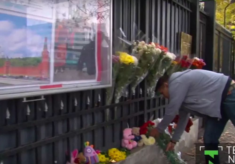 Казахстанцы несут цветы и свечи к посольству и консульству России Кадр с видео Tengrinews TV