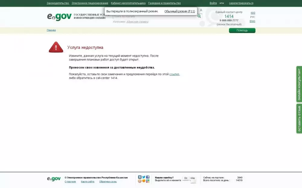 В Казахстане устраняют неполадки электронной оплаты штрафов Скриншот страницы, которая появляется на портале Egov.kz при попытке оплаты штрафа за нарушения ПДД.