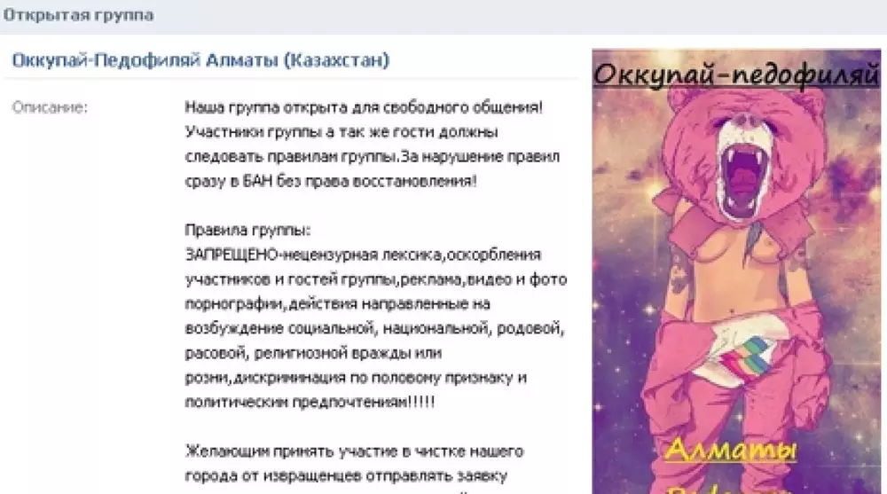 Активных членов в группе только двое, остальные - общественные добровольцы, чей состав на каждом "рейде" меняется. По словам Романа, присоединиться к активистам может любой желающий гражданин старше 18 лет, независимо от национальности, вероисповедания и политических взглядов. Таким образом, собеседник опровергает информацию о том, что участники казахстанского движения "Оккупай-педофиляй" связаны с российскими националистами и одноименной российской структурой, которую создал Максим Марцинкевич, более известный как Тесак. Как уточнил собеседник, им лишь понравилась сама идея россиян - как можно вычислять извращенцев в Интернете. "Наша цель - очистить город от всякого рода извращенцев, а отнюдь не какая-нибудь пропаганда", - уточнил Матвеенко.