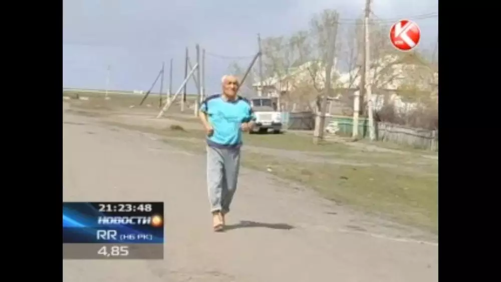 Казахстанский ветеран в 90 лет ежедневно бегает босиком по три километра