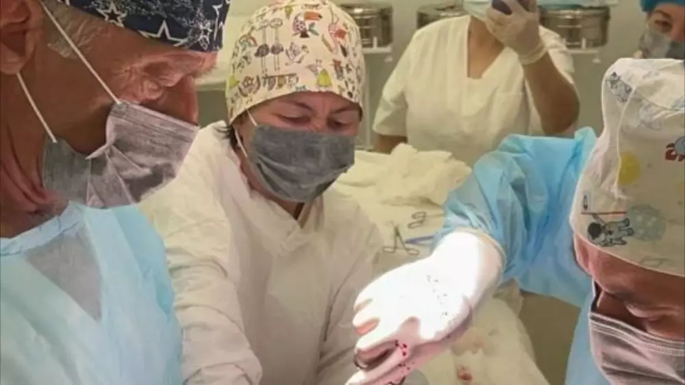 В ходе оперативного вмешательства из желудка пациентки было изъято около 1,2 килограмма инородного тела – трихобезоара (волосяной ком). Операцию провела бригада специалистов: заведующий хирургическим отделением Эльбрус Салпагаров, заведующий операционным отделением Канат Дуйсебаев и анестезиолог Бахтияр Баялиев. Сейчас девочка идет на поправку.