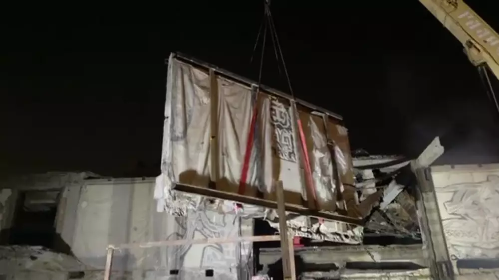 В "Целинном также сообщили, что выполняется демонтаж стены с репликой сграффито Евгения Сидоркина. Основную стену со сграффито, которая подлежит усилению, демонтировали успешно, крупными блоками для последующей реставрации после установки на прежнюю ось.