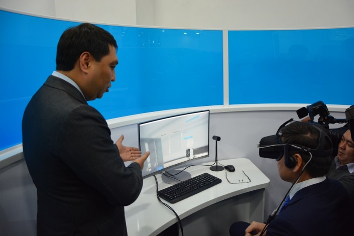 "Добро пожаловать в цифровой офис Казпочты", - приветствует всех клиентов робот по имени Куаныш. Сегодня он вместе с виртуальным помощником презентует первый офис будущего вице-премьеру РК Аскару Жумагалиеву и приглашенным гостям. Аналоги такого офиса Казпочта запустит в нескольких городах страны. Услуги здесь оказывают не привычные всем девушки-операторы, а гибридные банкоматы, электронный кассир, почтомат и VR-агент.
