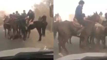 Видео с кокпаром (прим.: казахская конная спортивная игра) на трассе распространилось в социальных сетях. На кадрах видно, что толпа мужчин на лошадях мешает дорожному движению.