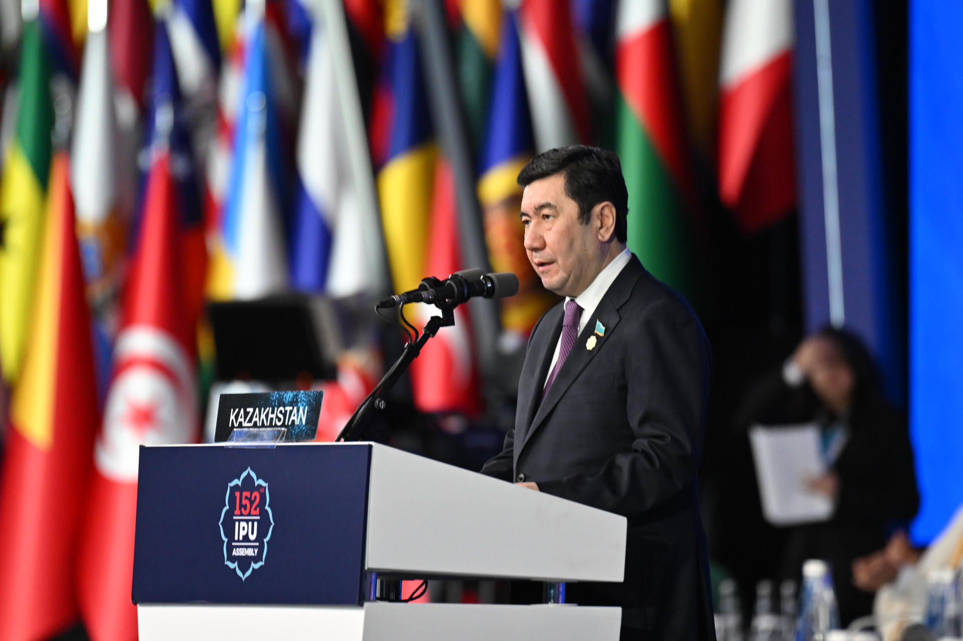 "Казахстан всегда придерживается строгого соблюдения Устава Организации объединенных наций, выступает за открытый конструктивный диалог и мирное урегулирование конфликтов. Это фундаментальные принципы внешней политики нашей страны, последовательно реализуемые Президентом Казахстана Касым-Жомартом Токаевым. Как известно, Астана и Алматы неоднократно становились площадкой для мирных переговоров конфликтующих сторон. Кроме того, наше государство вносит свой весомый вклад в укрепление международного мира и безопасности в составе миссий Организации объединенных наций", – сказал председатель Мажилиса.