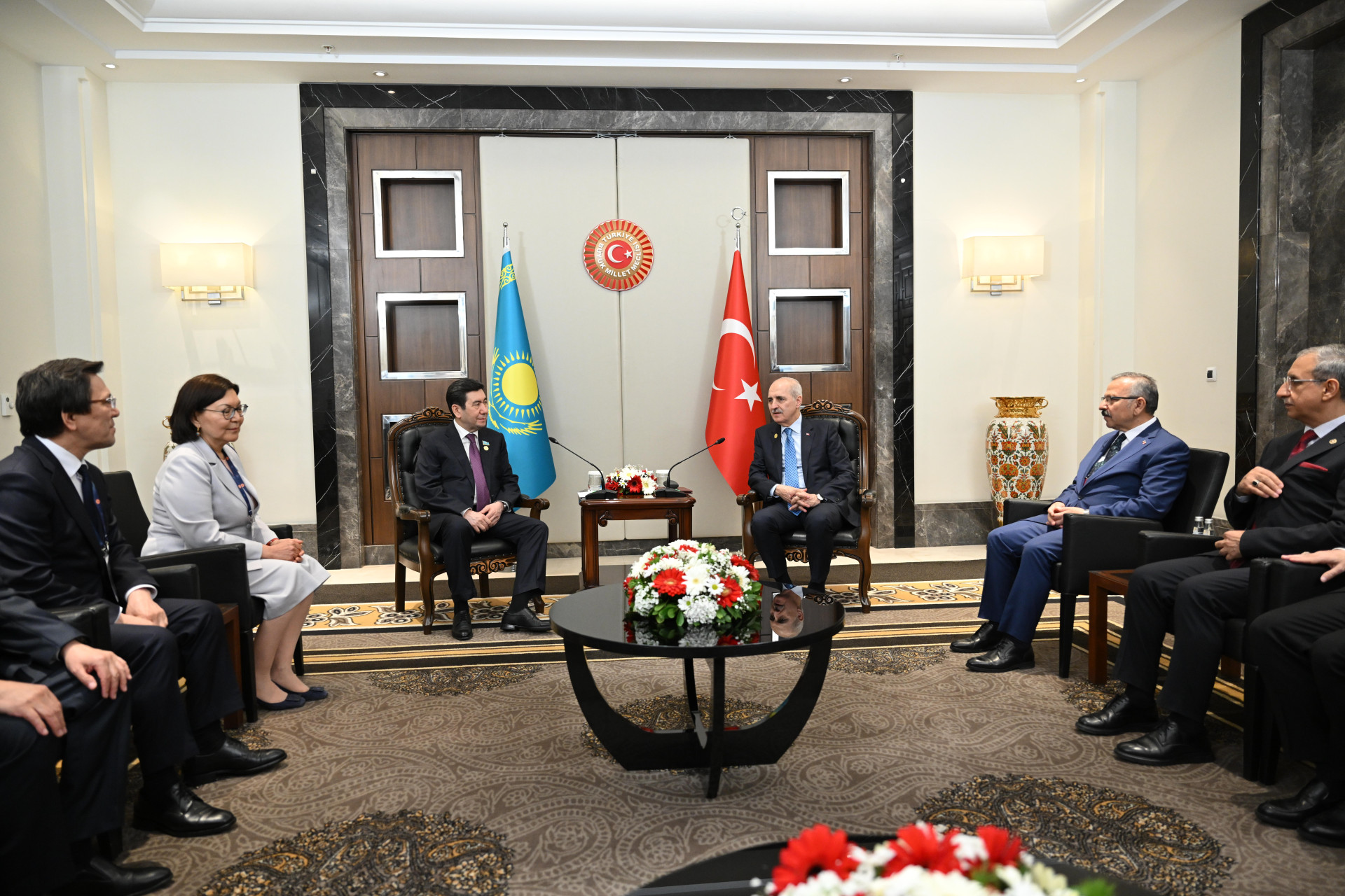 C председателем Великого национального собрания Турции Нуманом Куртулмушем были обсуждены вопросы законодательной поддержки договоренностей лидеров государств. Кыргызского коллегу Марлена Маматалиева Ерлан Кошанов поздравил с избранием на пост председателя Жогорку Кенеша Кыргызстана и подчеркнул, что Казахстан придает большое значение укреплению межпарламентского взаимодействия с братской страной.