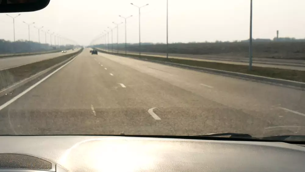 Белая разметка на трассе нарисована криво, отрывисто, а на некоторых участках и вовсе отсутствует. Видео было снято на мобильный телефон одним из жителей района. Отметим, что такая же "проблемная" разметка и на встречной полосе.