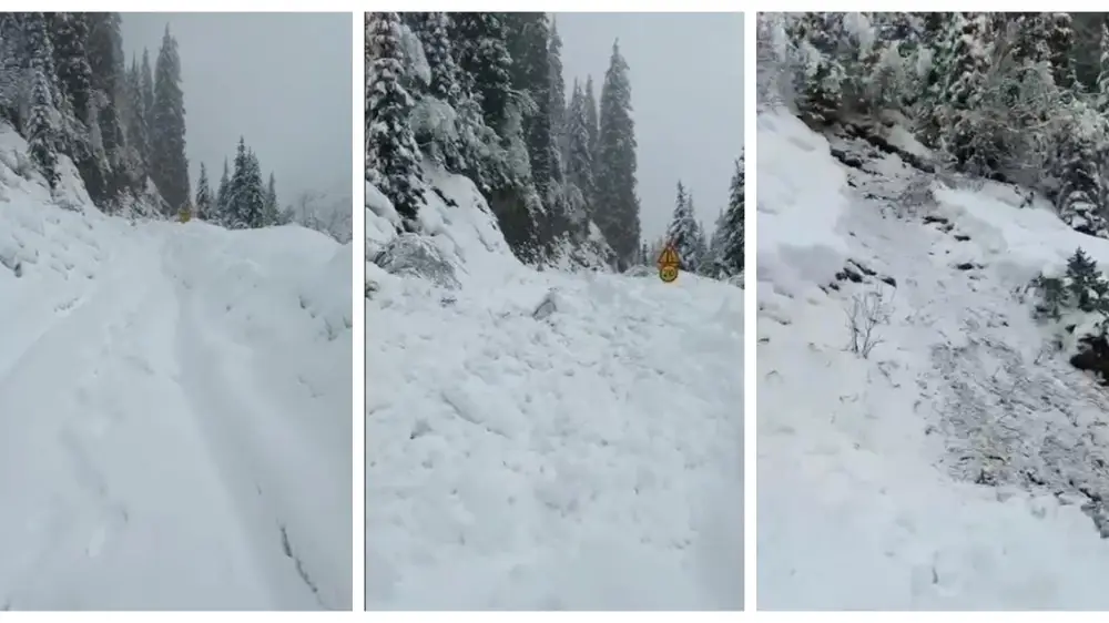 Крупная лавина сошла на автодорогу Алматы - Космостанция Кадры из видео: t.me/qazavtojol