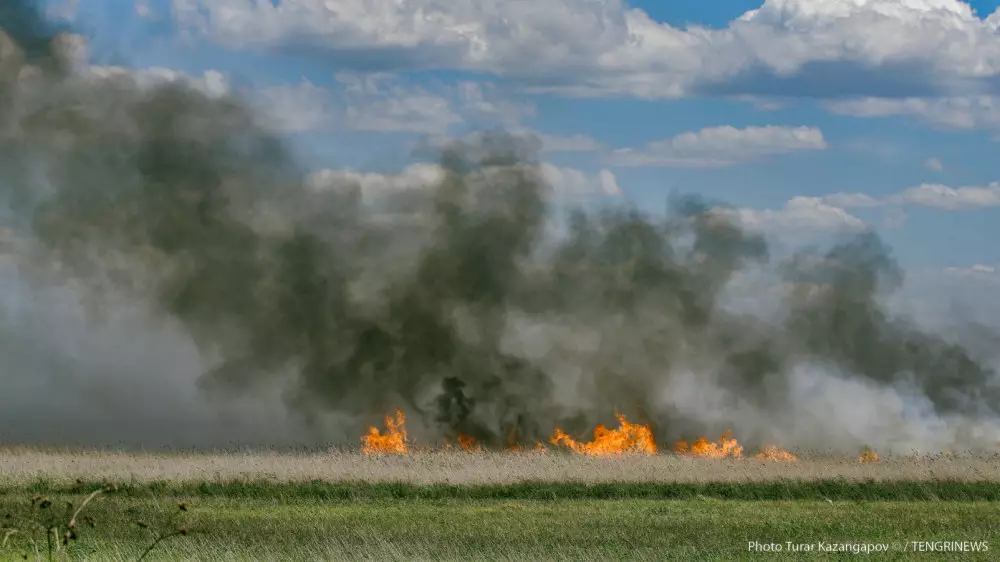 Площадь пожара составила 1500 гектаров. Трава загорелась в 45 километрах от села Кенжебайсамай Жанааркинского района.