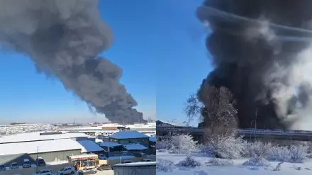 "На тушение склада и защиту рядом расположенного административного здания введены пожарные стволы, обеспечена бесперебойная подача воды, автоцистерны установлены на пожарные гидранты. Обстановка под контролем ДЧС через камеры видеонаблюдения и обнаружения задымлений и пожаров по городу", - сообщили в ведомстве.