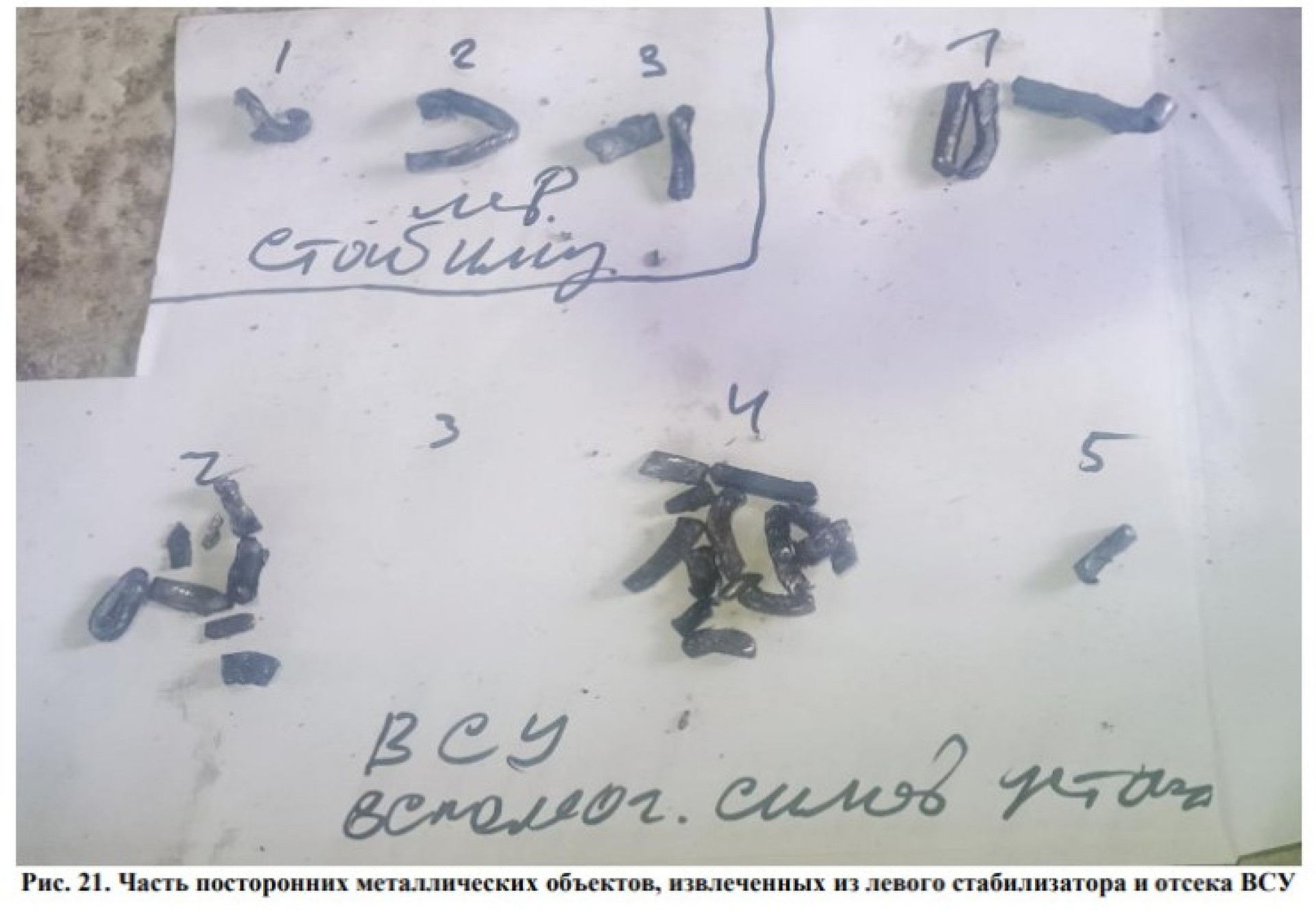 "Повреждения воздушного судна предположительно были вызваны поражающими элементами боевой части, однако их принадлежность установить не удалось".