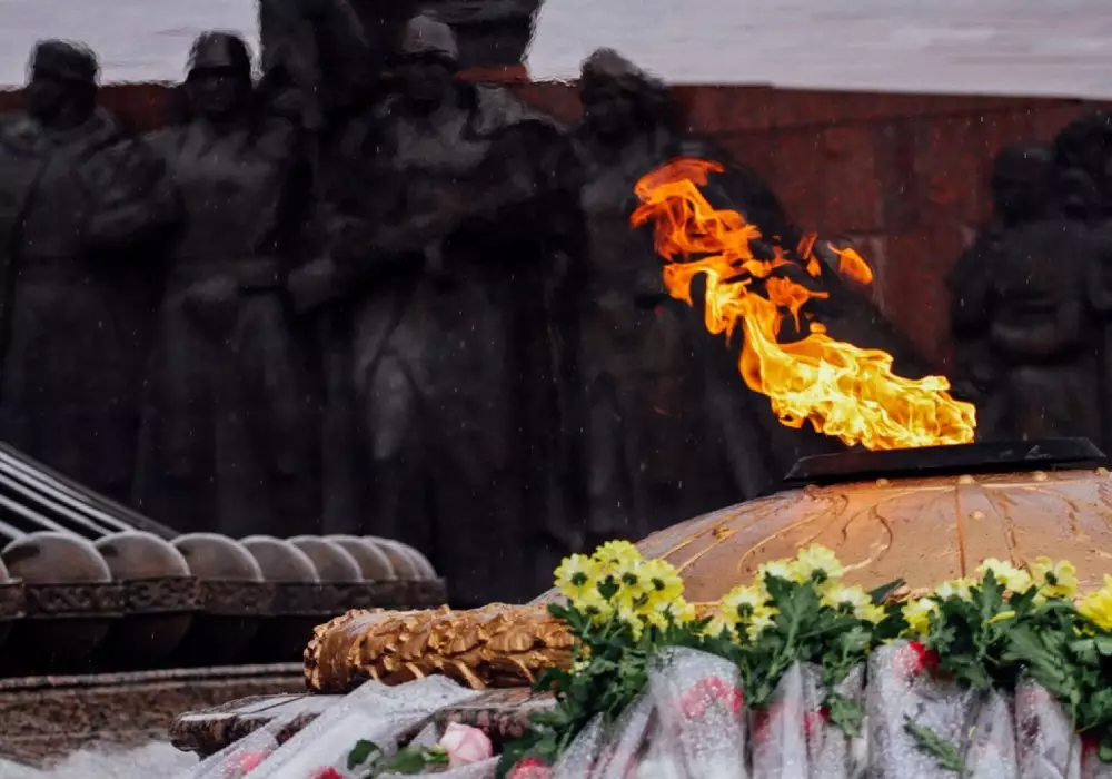 В 12.30 стартует акция "Жаужүрек полк - Бессмертный полк". Маршрут шествия: от площади у Монумента "Қазақ елі" по проспекту Тәуелсіздік до площади Отан қорғаушылар.