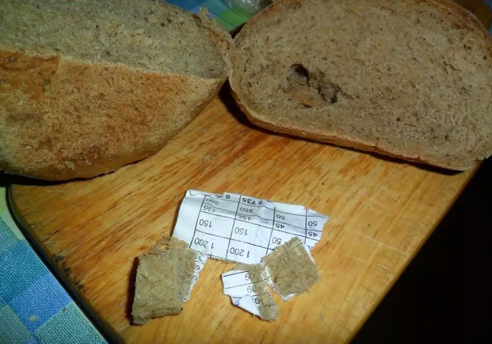 Наталья Штер купила хлеб в одном из местных магазинов с собственной пекарней. Разрезав булку, женщина обнаружила в нем кусок какого-то документа. На отрывке офисной бумаги ясно видна таблица с цифрами.