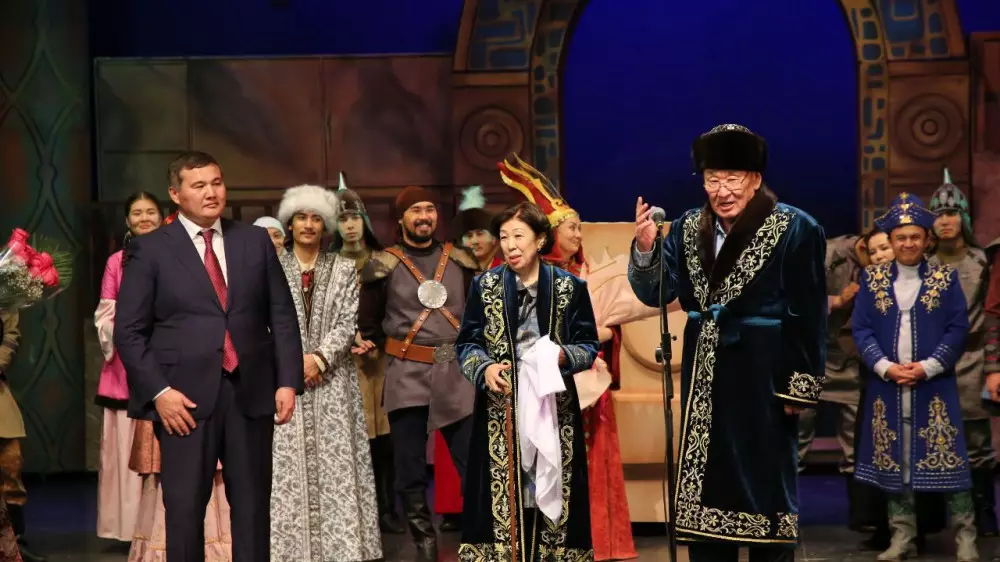 Торжественное мероприятие завершилось премьерной постановкой на кызылординской сцене драматической саги "Мәңгілік елдің алтын адамы", призывающей к единству и солидарности.