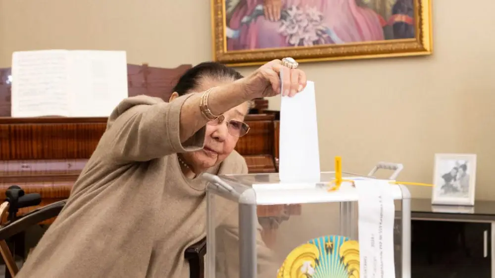 Для 94-летней артистки голосование прошло на дому. Представители избирательного участка №559 в Алматы доставили урну для бюллетеней по месту жительства Бибигуль Ахметовны.