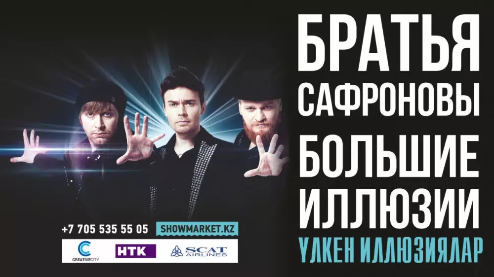 Весна – идеальное время, чтобы открывать для себя что-то новое и непременно волшебное. Сохранить в душе это настроение поможет невероятное шоу масштабных иллюзий для всей семьи, которое привезет в Казахстан легендарное трио братьев Сафроновых, известное всему миру благодаря проекту "Битва экстрасенсов". Илья, Сергей и Андрей Сафроновы покажут настоящие чудеса новой формации 4-5 марта во Дворце единоборств Jekpe-Jek в Астане и 10-12 марта во Дворце спорта и культуры имени Балуана Шолака в Алматы.