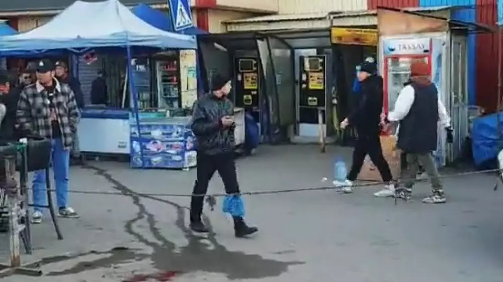 В соцсетях появилось видео, на котором автомобиль полиции стоит на одном из участков алматинской барахолки. Автор ролика рассказала, что на этом месте жена ударила мужа ножом.