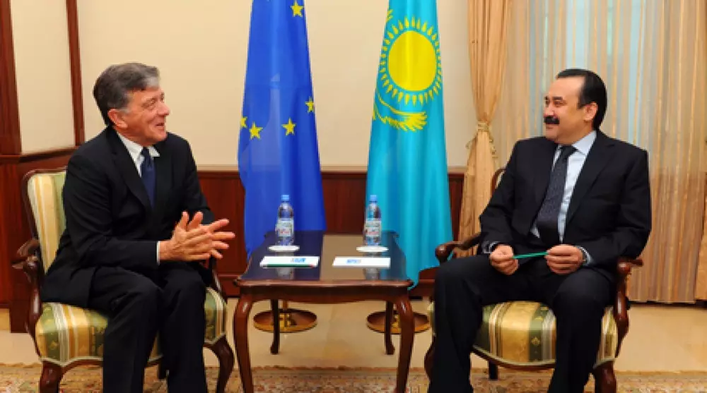 11 ноября Карим Масимов принял главу представительства Евросоюза в Казахстане Норбера Жустена, сообщает Tengrinews.kz со ссылкой на официальный сайт премьер-министра РК. Масимов и Жустен обсудили завершение переговоров Казахстана с ЕС по вступлению в ВТО. "Также собеседники обсудили вопросы развития торгово-экономического сотрудничества с ЕС, а также заключения соглашения о расширенном партнерстве Казахстана со странами Евросоюза", - уточняется на сайте премьер-министра. Стороны отметили достигнутый прогресс по реализации государственной программы "Путь в Европу" и признали успешной стратегию ЕС для стран Центральной Азии.
