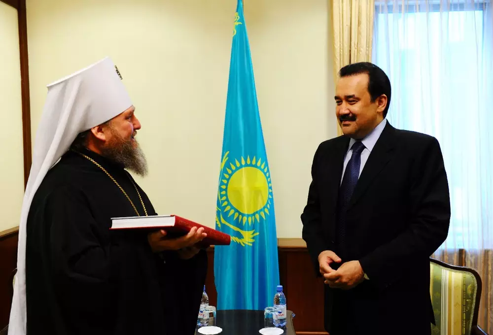 Премьер-министр вручил митрополиту свидетельство о государственной регистрации нового канонического подразделения Русской Православной Церкви (Московского Патриархата) - Православной Церкви Казахстана.