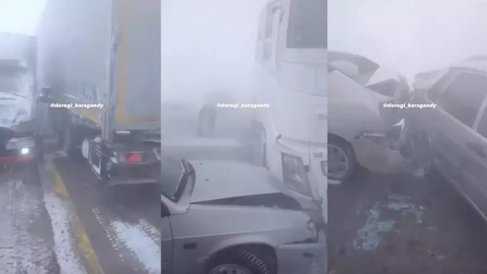 "В отдел полиции Аршалынского района поступила информация о том, что вблизи села Жалтырколь произошло ДТП с участием нескольких автомашин. Прибывшие на место происшествия стражи порядка предварительно установили, что на 1299-м километре автодороги Екатеринбург - Алматы, вблизи села Жалтырколь, из-за метели и нулевой видимости произошла авария с участием пяти автомашин, из них три грузовые и две легковые", - проинформировали в полиции.