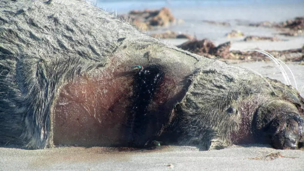 "Изначально мы с женой у берега увидели хищную птицу, которая что-то клевала. Подошли поближе. Птица улетела. Лакомилась она, как оказалось, мертвым млекопитающим. Морда тюленя была в крови", - рассказала местная семейная пара.